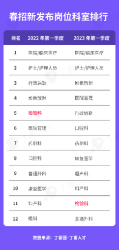 检验科岗位需求掉出前十,体检中心薪资位列第二