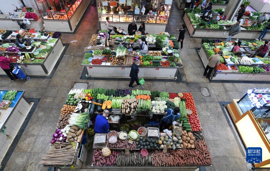 4月11日,在广西南宁市一家农贸市场,消费者选购蔬菜。