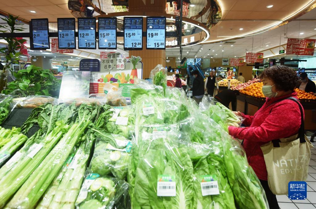 4月11日,消费者在杭州一家超市选购蔬菜。