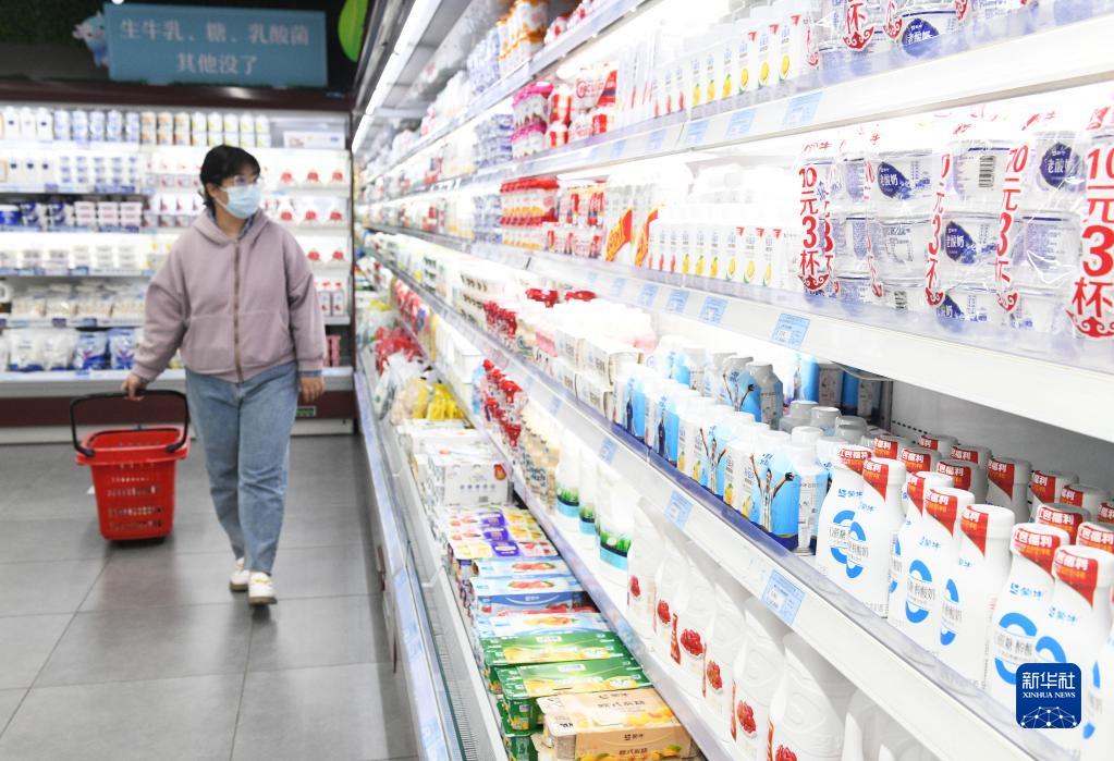 4月11日,消费者在河北省石家庄新乐市一家超市选购乳制品。