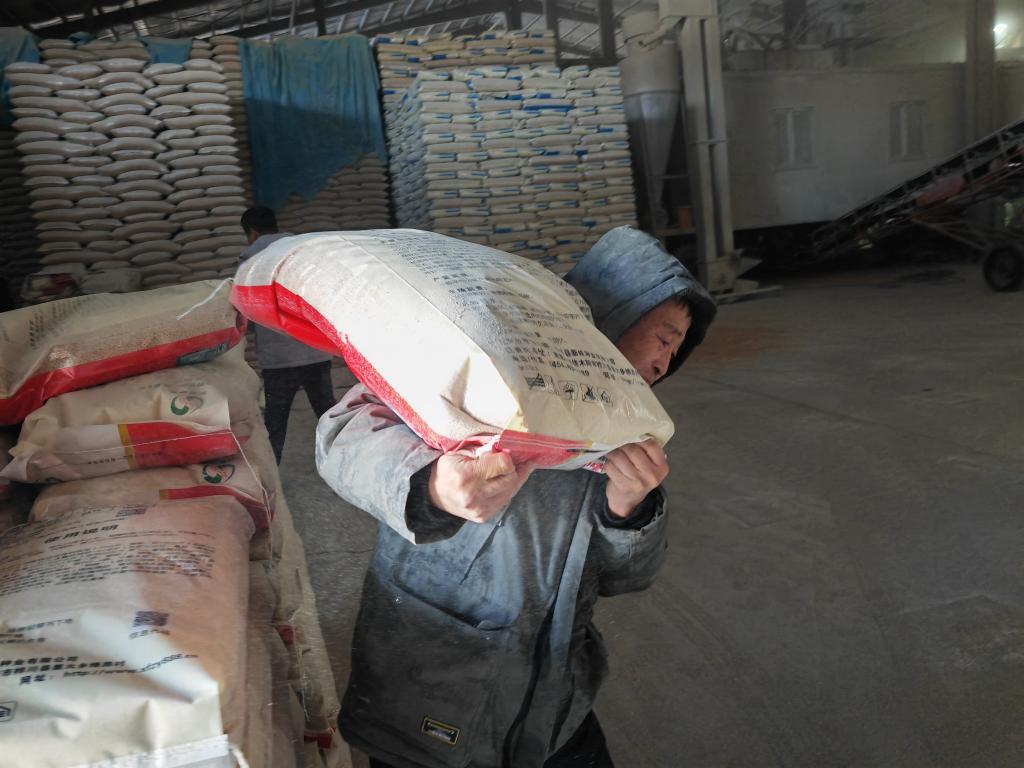 桦川县新峰种业有限公司库房里工人正在搬运种子。新华社记者黄腾 摄