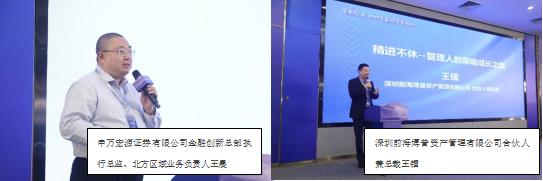 申万宏源证券有限公司金融创新总部执行总监、北方区域业务负责人王晨,深圳前海博普资产管理有限公司合伙人兼总裁王镭出席资管论坛并发表主旨演讲。