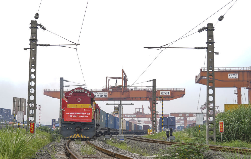 中老国际货运班列庆铃汽车专列从重庆团结村车站驶出(2022年6月8日摄)。新华社记者 黄伟 摄