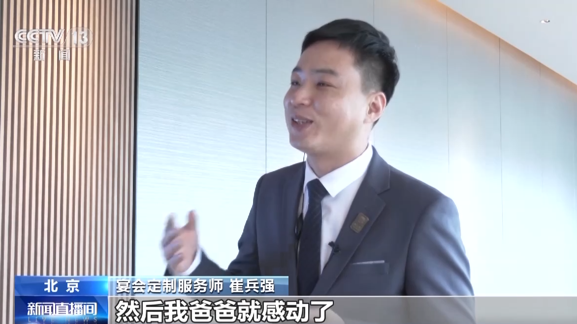 宴会定制服务师 崔兵强:后来我回去给我爸爸过生日,我也是找了一个餐厅,给我爸爸策划一下,然后我爸爸就感动了,铁汉柔情就流泪哭了,当时我妈妈笑了他半年这个事。