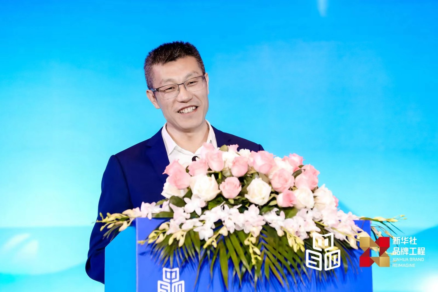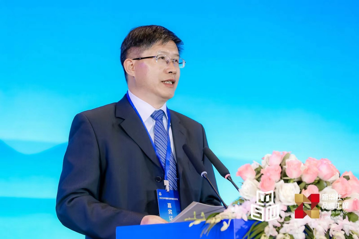 2023中国茶品牌建设论坛10日在上海举行,图为中国经济信息社党委书记、董事长、总裁徐玉长在论坛上致辞。