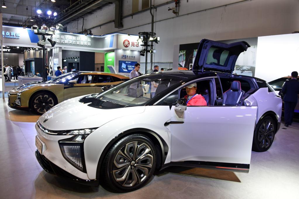 参观者在博览会上了解一款具备“智慧出行”功能的汽车。新华社记者李紫恒 摄