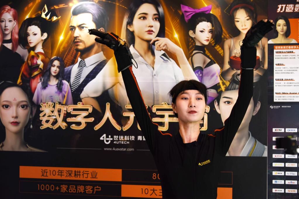 一名工作人员在博览会上演示“数字人”如何生成。新华社记者李紫恒 摄