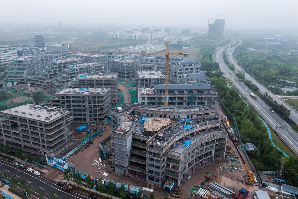 4月19日,浙江金华科技城科创孵化区块一期项目建设如火如荼。新华社记者徐昱 摄