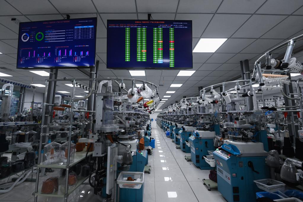 3月21日,浙江诸暨涧澜袜业有限公司数字化车间。新华社记者徐昱 摄