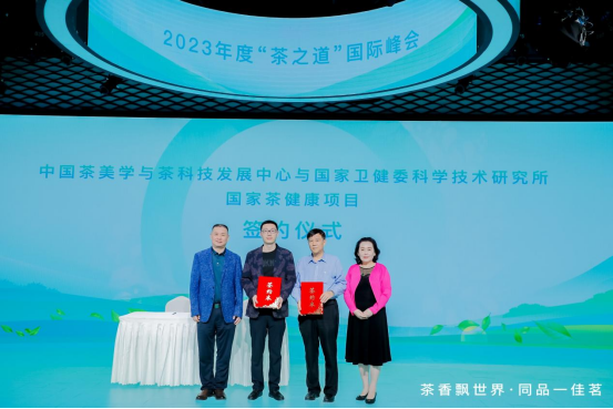 5月21日,在2023年度“茶之道”国际峰会上,中国茶美学与茶科技发展中心与国家卫健委科学技术研究所国家茶健康项目举行签约仪式。