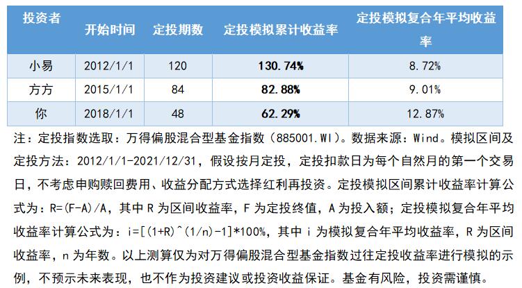 假如现在时光倒流,你回到了2012年1月1日,你的朋友小易准备开始定投。