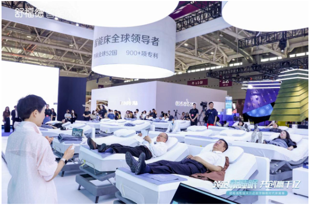 有关数据显示,现如今中国成年人失眠发生率为38.2%,国人的平均睡眠仅有6.92小时,深度睡眠的比例也只有28%,由此也将引发一系列疾病的发病风险。睡眠质量关系到每个人的身心健康,在“健康中国战略”的大背景下,今年的智家展尤为火爆。其中去年冬奥睡眠“黑科技”的供应商舒福德智能床占据了本次智家展的核心C位,以“一键入眠”为主的十二项产品核心技术吸引了无数人的眼球。