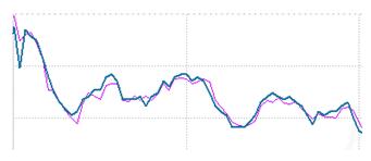 第三,看折溢价。受供求关系等因素影响,ETF的二级市场交易价格经常会与基金净值出现偏离,我们在行情软件中可以查看实时参考净值(IOPV)和成交价格的形态,以此来观察ETF的折溢价状态。下图为某ETF产品的分时图,紫线代表IOPV,蓝线代表成交价格。