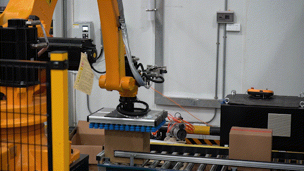 移动机器人在不停穿梭忙碌:机械手将指定货架和高度的物料精准揽入“怀中”,然后再运送到指定货架,机械手再轻拿轻放到指定位置;在三层楼高的立体仓库中,折叠移动的机械手精准插取货物,然后放置于地面AGV小车上,小车就平稳将货物运达指定位置……