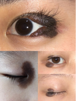 生活中我们还会偶尔遇到一种特殊类型眼睑色素痣,从出生就会有的,出现在上下睑的相对应的位置,伴随年龄增长它也会不断生长的色素痣——眼睑分裂痣,也可以择期手术。(图4)
