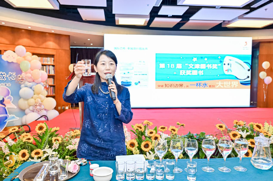 随后,主持人和编辑姐姐带领小朋友们一起开展了文津奖获奖图画书《一杯水》的分享活动,在穿插的小实验中共同领略了由一杯水带来的奇思妙想。
