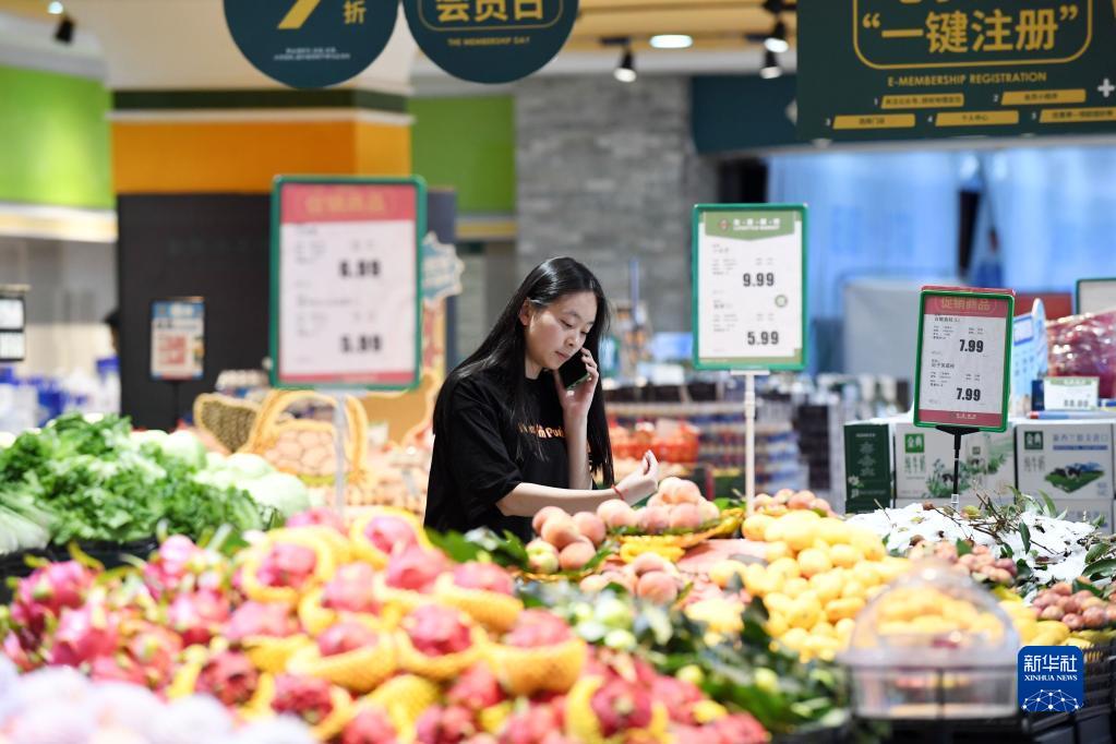 6月9日,消费者在贵州省仁怀市一超市选购水果。新华社发(陈勇摄)