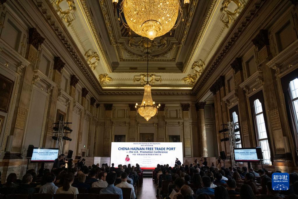 这是6月9日在英国伦敦拍摄的海南自贸港英国专场推介会现场。新华社发(史蒂芬·程摄)