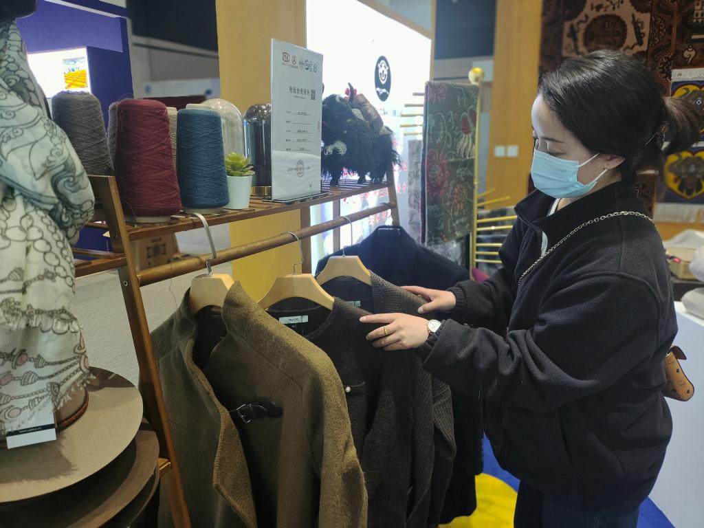 29岁的销售员次措麻利地将款式不一的牦牛绒服饰摆上展位,她有些兴奋地说:“通过藏博会,我们的特色牦牛绒制品会被更多国内外游客看到。”
