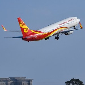 一架海南航空班机在海口美兰国际机场二期跑道起飞。(新华社记者杨冠宇摄)