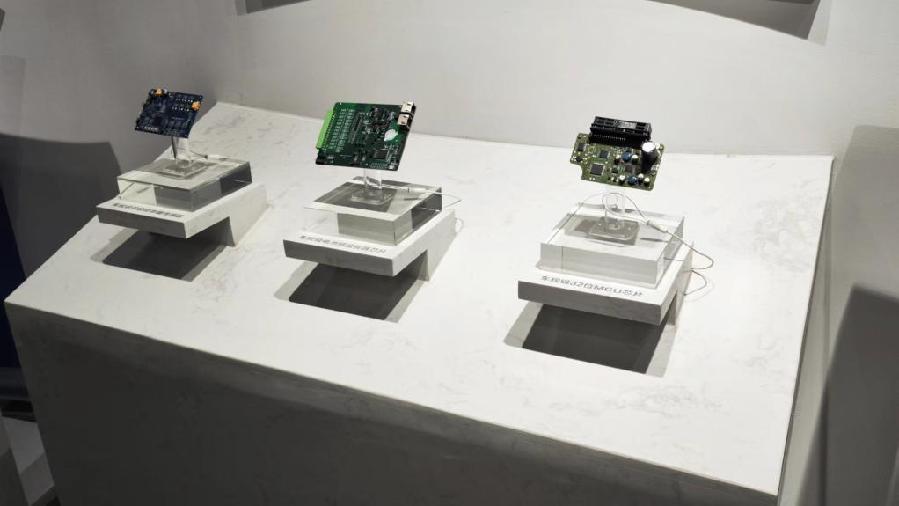 张江高科895孵化器的展厅里,展示着众多孵化企业的科技产品。新华社记者董雪 摄