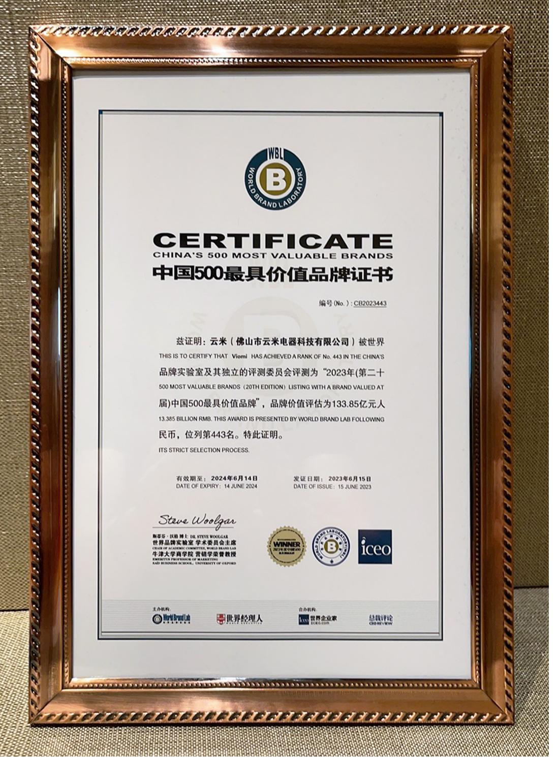 日前,由世界品牌实验室(World Brand Lab)主办的(第二十届)“世界品牌大会”在京举行,会上发布了2023年《中国500最具价值品牌》分析报告。在这份基于财务数据、品牌强度和消费者行为分析的年度报告中,云米以133.85亿元的品牌价值首次荣登本年度最具价值品牌榜,位列443名。据了解,在本年度的品牌榜单中,全屋智能行业仅有云米和三翼鸟两个品牌上榜。