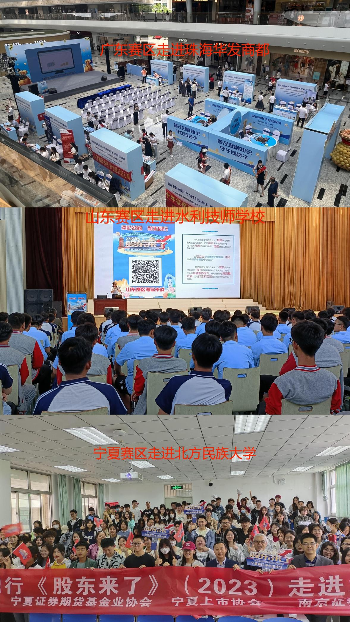甘肃证监局联合共青团甘肃省委、甘肃省教育厅举办“赠汝书香·财商启航”金融知识进校园暨《股东来了》(2023)投资者权益知识竞赛活动,覆盖省内高校20余所,在校学生30余万人,总赠书量50000册。9大赛区充分发挥各自地域优势,结合“六一儿童节”“端午节”等节日,利用“5.20青年交友活动”“爱心助考”等节点,开展“丝路陇上行 投教你我情”重走丝路系列投教活动、“童心时光 温润如玉——国风少年研学行”财商教育特色活动、大型现场投资者教育活动、大型线上直播活动、灯谜有奖答题活动等,开设《投教大讲堂》,利用投资策略报告会、车展、投教大篷车黄河行等将推广活动开展得精彩纷呈。