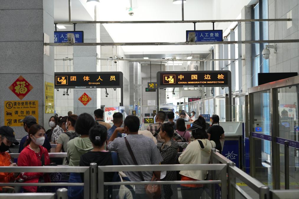 游客在广西凭祥市友谊关口岸办理入境验放手续。新华社记者黄耀滕 摄