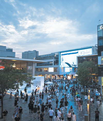 北京市三里屯太古里商圈引入品牌首店和旗舰店,吸引不少市民前来打卡、购物。苏卫忠摄