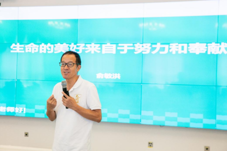 分享中,俞敏洪讲述了他18年的农村生活、3年的高考奋斗、11年的北大岁月和30年的新东方事业讲述了努力和奉献在他的人生中起到的积极作用,与大家分享他为人处事的两个态度——努力和奉献。
