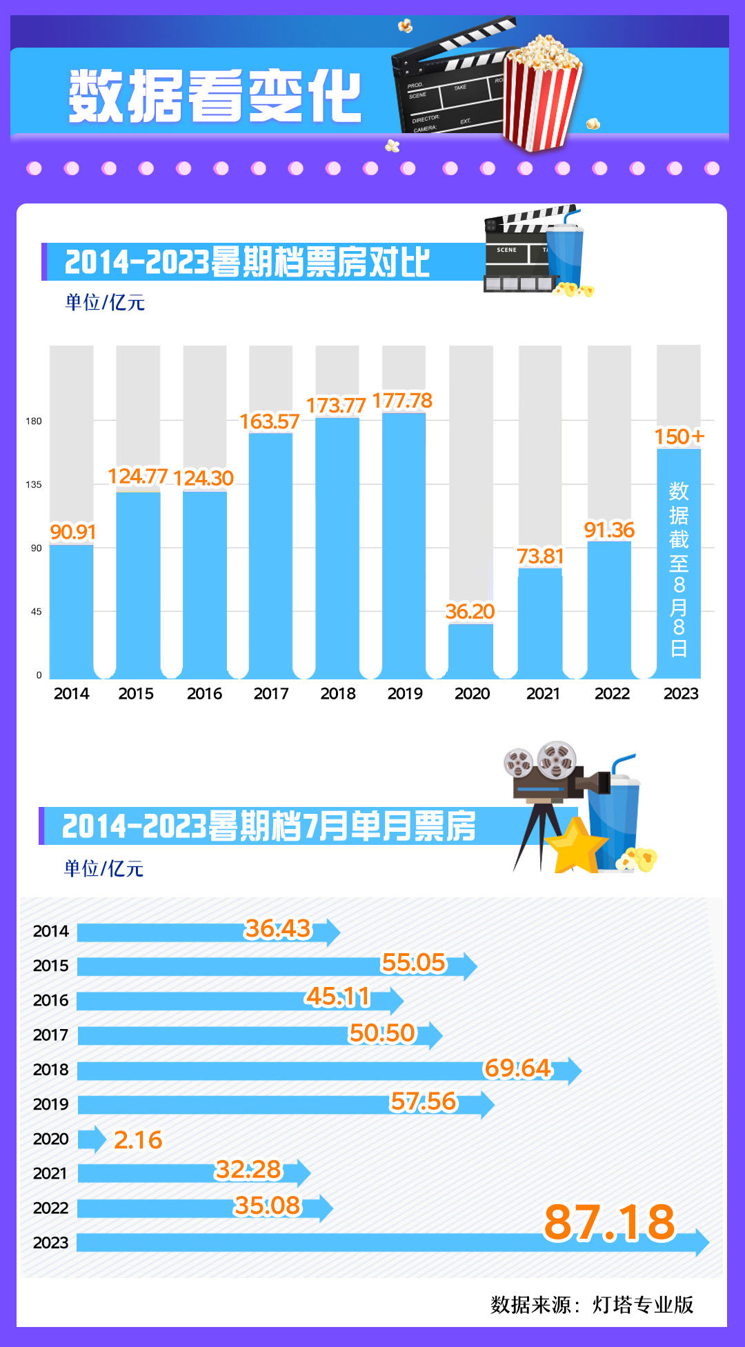 截至记者发稿,暑期档票房已突破150亿,时隔四年后重回“百亿”级。