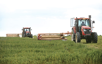 盐池县农户在牧草基地开展收割作业。新华社记者 杨植森摄