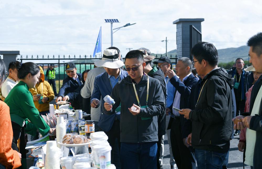 参会代表在四川省阿坝藏族羌族自治州红原县省级五星牦牛产业园区了解牦牛乳产品。(耿小耀 摄)