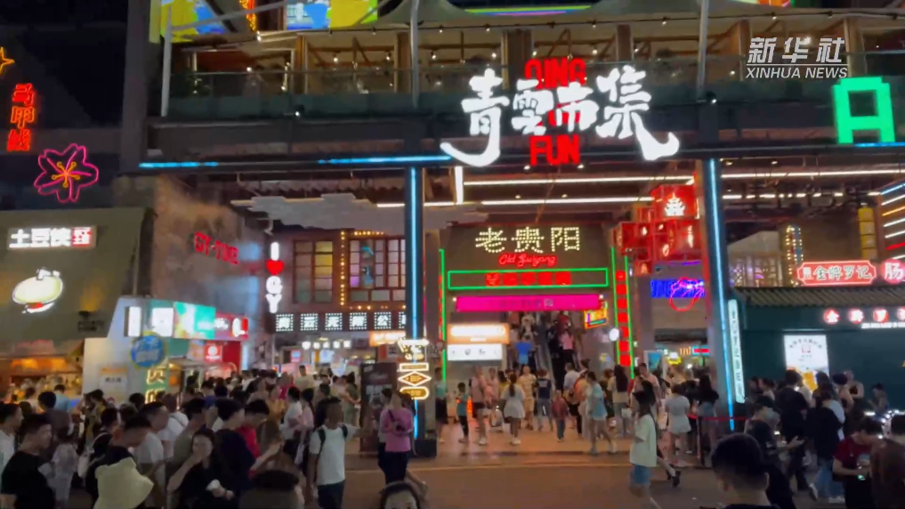 青云路是陪伴贵阳人几十年的“深夜食堂”,不仅承载了许多美食记忆,还记录着城市的发展变迁。经过升级改造,单一的夜市摇身一变成为青云市集,既保留原有的烟火气,又注入时尚潮流元素。餐饮、娱乐、文创三种业态交织融合,7月以来,每天约有3万人次在这里感受灯光璀璨的都市夜晚,体验贵阳本地夜生活。