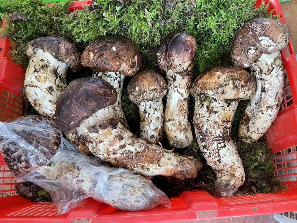村民们刚采摘的新鲜松茸。(李文富 摄)