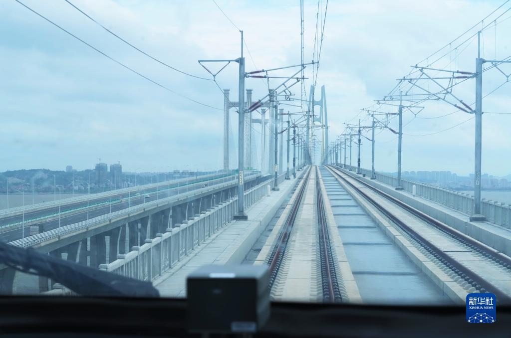 8月31日,试运行列车经过福厦高铁泉州湾跨海大桥。新华社记者 林善传 摄