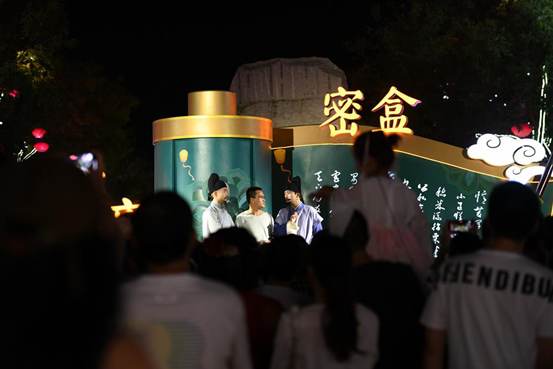 新华网西安9月8日电(记者 王雨馨)漫步大唐不夜城步行街区,仿唐建筑飞檐斗拱、层楼叠榭;华灯初上后灯火璀璨、游人如织。白居易笔下的雁塔题名、诗仙李白的醉酒吟诗、古诗古画中的簪花仕女、青史留名的房谋杜断……散落在史书典籍中的故事遗珠,通过现代舞蹈、真人演绎、现场互动等形式,再次呈现在世人面前。