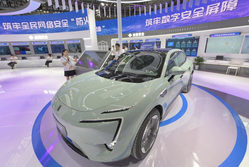 2023年国家网络安全宣传周网络安全博览会现场展示的智能网联汽车(9月11日摄)。新华社记者 姜克红 摄