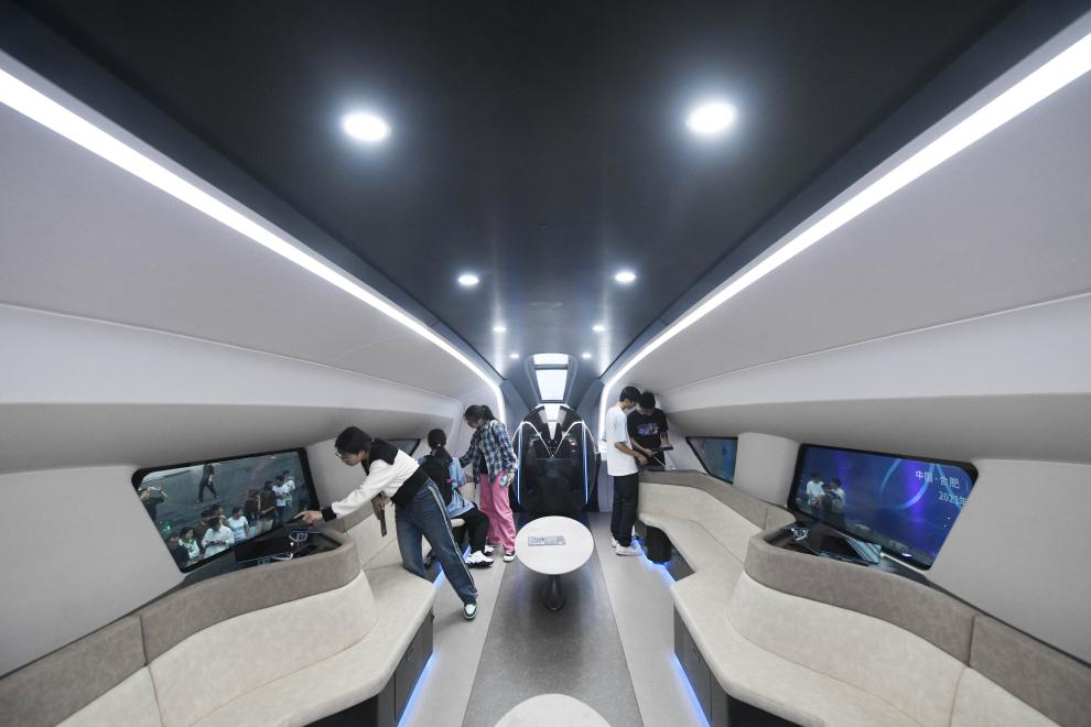 9月20日,在2023世界制造业大会上,观众近距离了解时速600公里高速磁浮交通系统。新华社记者 张端 摄