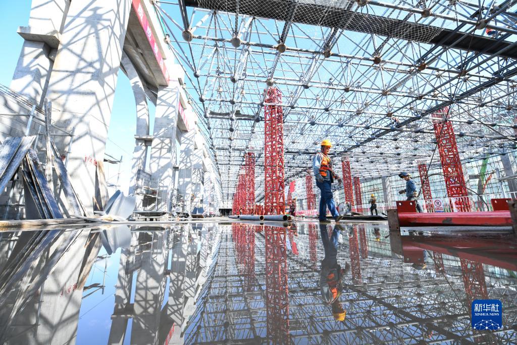 9月27日,工人在伊春西站施工现场作业。新华社记者 王松 摄