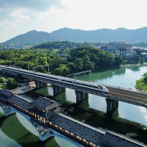 复兴号列车行驶在贵广高铁桂林灵川境内。(杨靖育 摄)