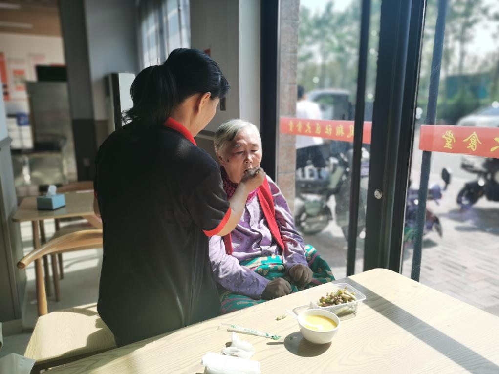 坊子区凤翔社区助老食堂的工作人员帮助患病的老人就餐。新华社记者 王志 摄
