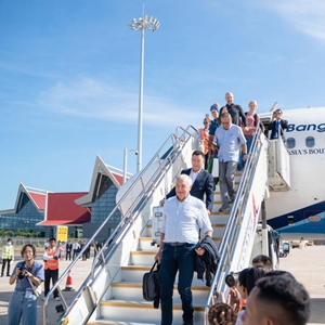 柬埔寨民航国务秘书处大臣毛哈万纳当天主持了首航仪式,柬埔寨副首相兼内阁办公厅大臣翁赛维索、旅游大臣索索根、暹粒省省长布拉索潘等官员,中国驻柬埔寨大使馆驻暹粒领事办公室、中国民用航空局、机场投资方与建设、运营管理单位云投集团、云南建投集团、云南航产投集团等机构代表,以及其他参建合作单位和柬埔寨旅游协会的代表等各界人士近400人参加首航仪式。