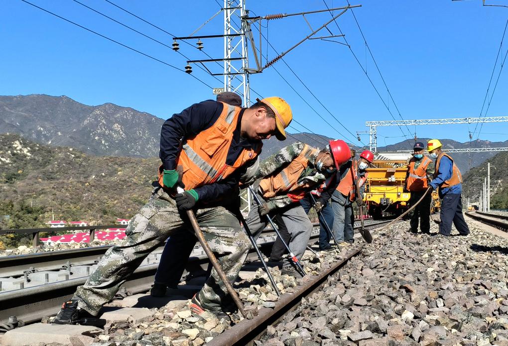 施工人员在对线路进行整修。(中国铁路太原局集团公司供图)