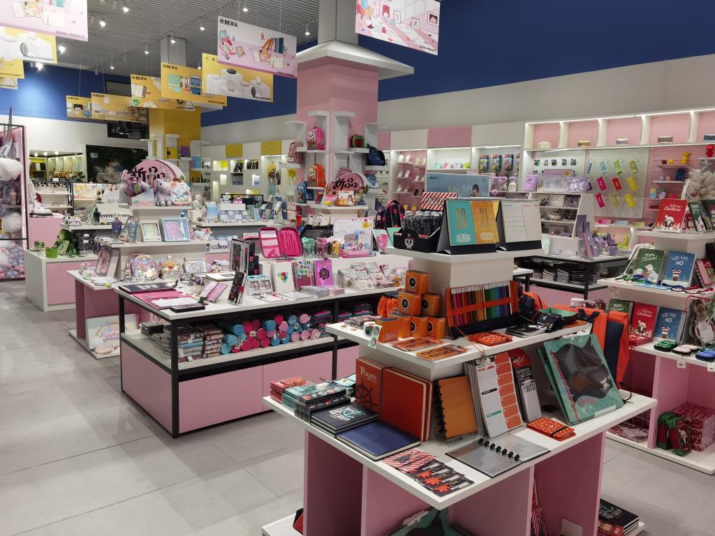 在浙江贝发集团展厅一角,展示着各种文具用品。新华社记者顾小立 摄