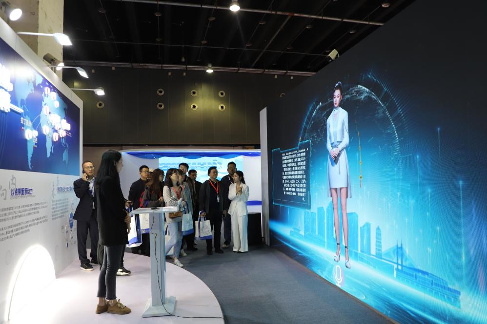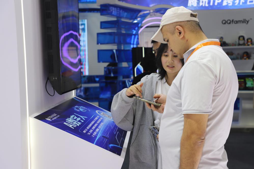到会客商在工作人员引导下体验“义乌小商品城Chinagoods”平台升级后的AI应用。新华社记者张晓洁 摄