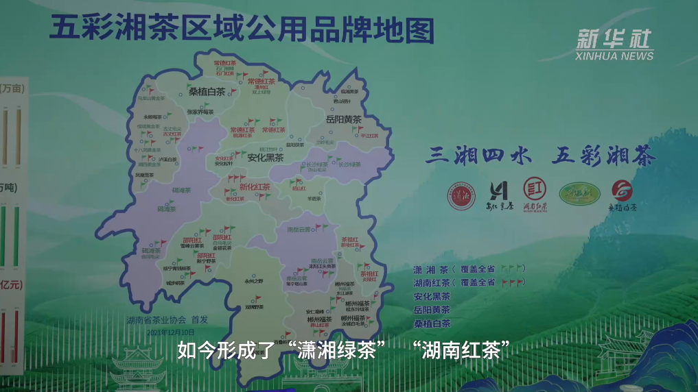 湖南是传统的产茶大省,茶文化底蕴深厚,如今形成了“潇湘绿茶”、“湖南红茶”、“安化黑茶”、“岳阳黄茶”、“桑植白茶”为引领的“五彩湘茶”产业集群。在湖南茶叶展区,这里不仅有各品类茶叶的展示,还有以“五彩湘茶”为基础的茶饮研发。