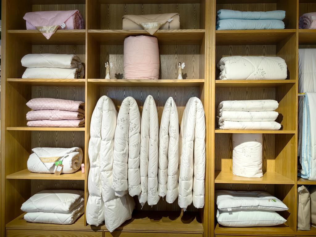 山东鑫瑞娜家纺股份有限公司展厅展示的可水洗棉花被。新华社记者贾云鹏 摄