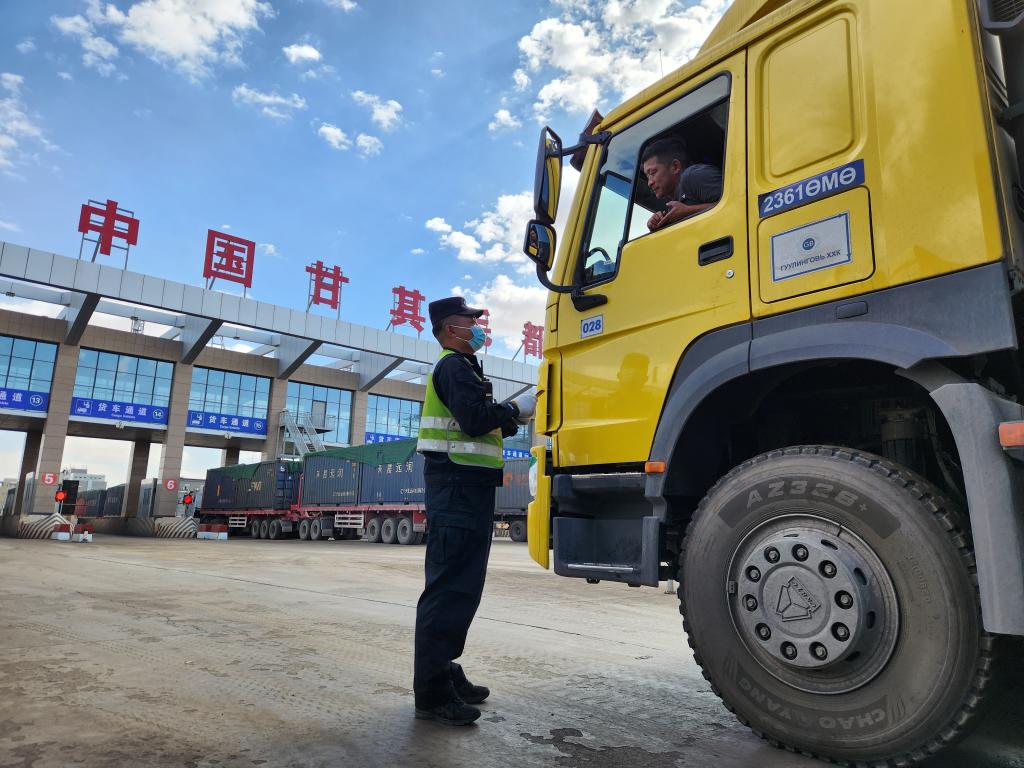 在每个通关日的早上8时,随着甘其毛都口岸入境通道的开启,一辆辆货车在办理相关手续后快速入关,通关货运工作实现便捷、高效运转。记者现场看到,在入境货车司机完成海关检验检疫后,边检民警即时对入境车辆进行车体检查。在边检民警查验车辆、加盖验讫章后,入境货车在工作人员引导下进入海关监管区,完成验货、过磅、卸货等流程。甘其毛都出入境边防检查站执勤民警冯帆说:“我们使用专用设备严查细验每一辆货车,保证出入境车辆随到随检。”