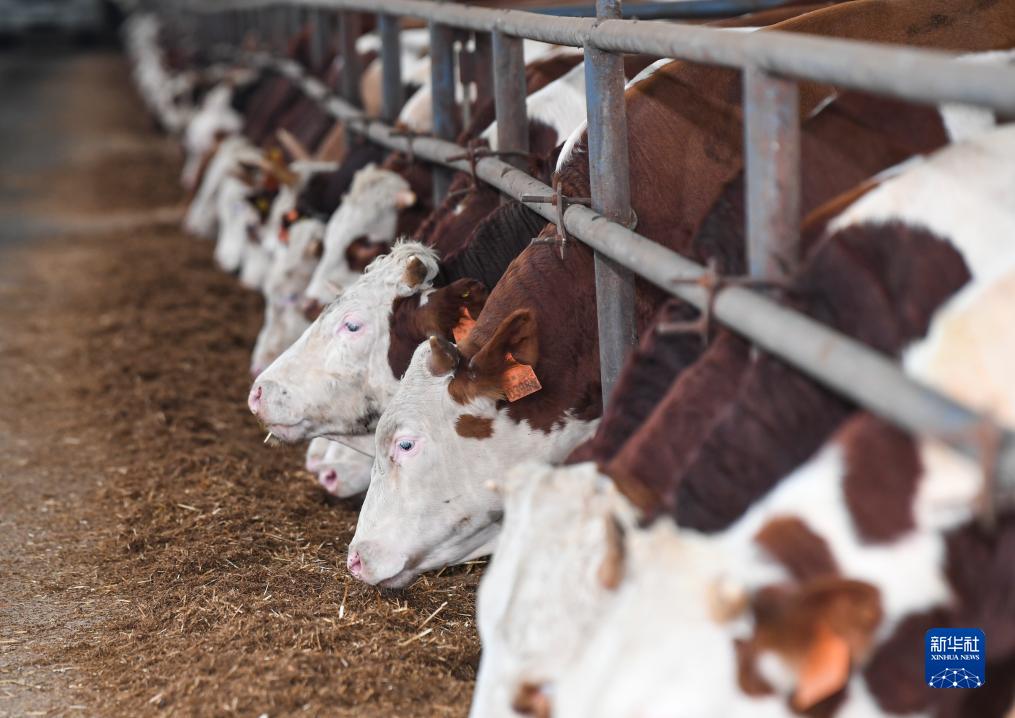 10月23日,在重庆恒都农业集团有限公司投建在丰都县高家镇厚池坝村的肉牛育肥场,肉牛在进食。新华社记者 王全超 摄
